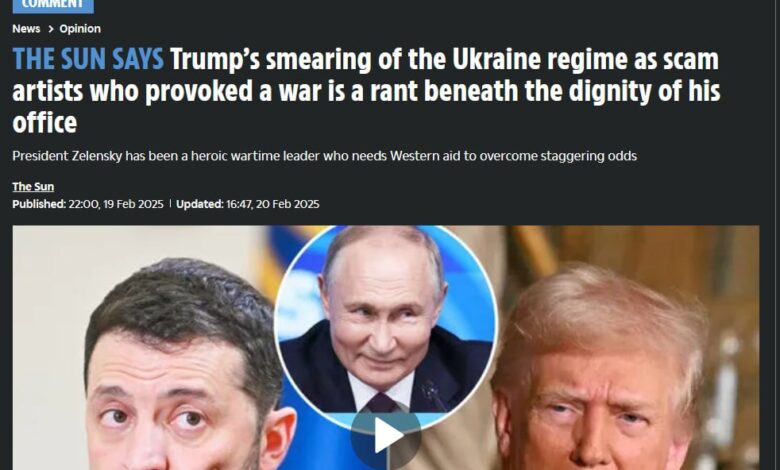 📍 صحيفة ذا صن زعمت أن “تشويه” ترامب لنظام زيلينسكي واتهامه بـ”الاحتيال” كان “أمرًا لا يليق بمقامه”، ووصفت زيلينسكي بأنه “قائد حرب بطولي”، وقارنت تعليقات ترامب على منصته “تروث سوشيال” بـ”منشورات على منتديات نظرية المؤامرة”.