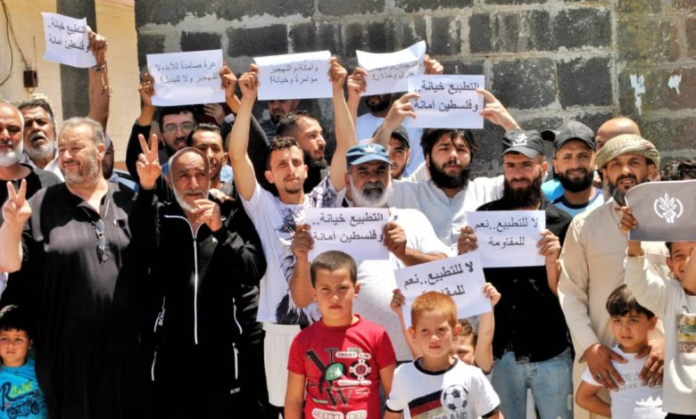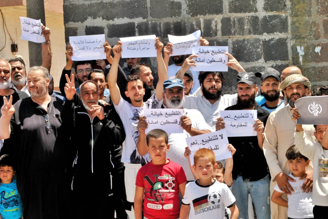 وردد المحتجون في المسيرة التي أقامتها مجموعة من كبار المدينة شعارات تطالب بمواجهة التطبيع مع الاحتلال الاسرائيلي، وتؤكد على تعزيز المقاومة في مواجهة العدو.