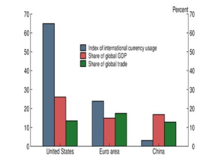 ويرى تقرير مجلس الأطلسي (Atlantic Council) أن قوة الاقتصاد الأميركي وضيق السياسة النقدية والمخاطر الجيوسياسية عززت دور الدولار عالمياً في المدى القريب[6]